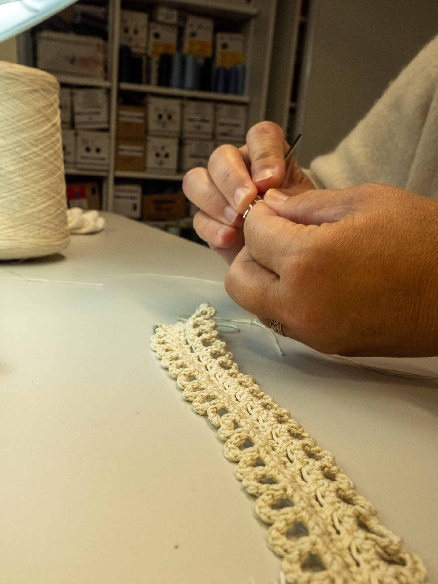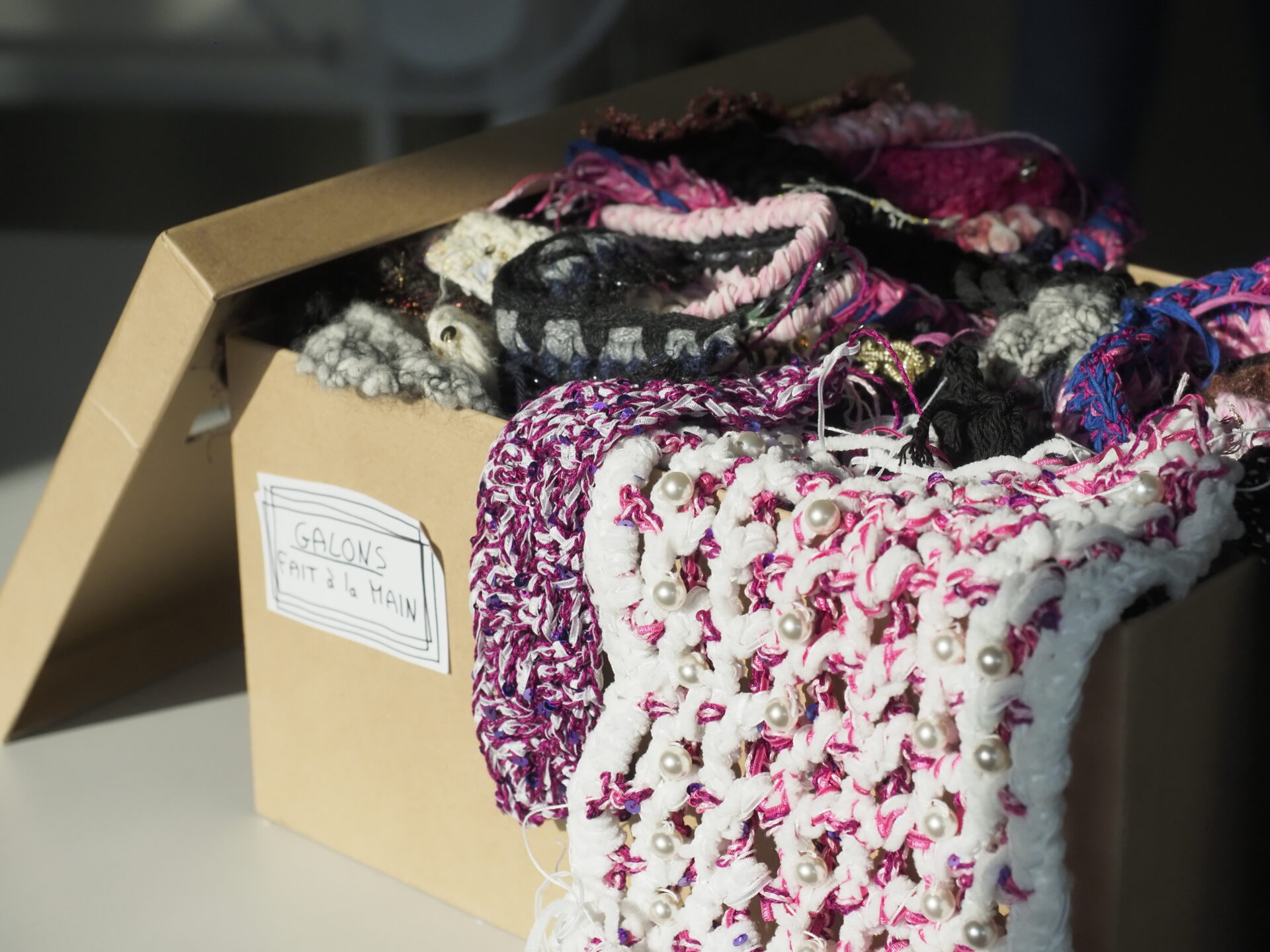 Nous réalisons de nombreux ouvrages d’embellissement à la main : galon, crochet (bordure, fleur, élément décoratif), tricot main, raseuse, coupe fils, laine brossée, aiguilletage, feutrage…